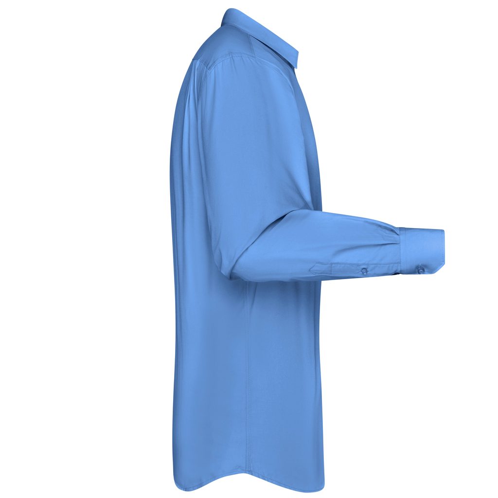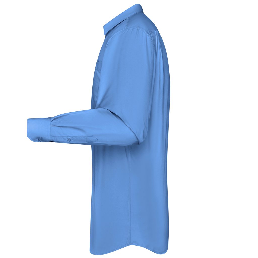 Класична чоловіча сорочка з довгими рукавами звичайного крою зручна в носінні завдяки поєднанню матеріалів. Нижній край злегка закруглений. Бавовна-поплін з легким доглядом гарантує легке прасування сорочки. Сорочка злегка приталена, має нагрудну кишеню і складки на задньому сидінні. Матеріал: 65%…